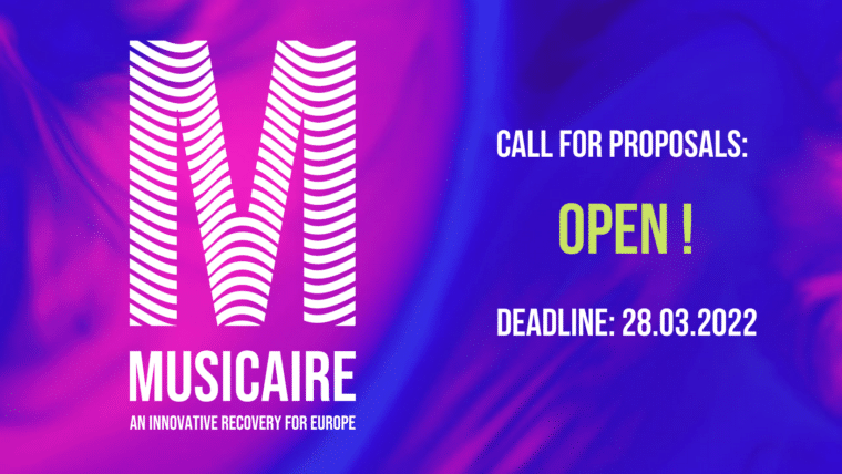 - Une reprise juste et résiliente : Les projets MusicAIRE désirent soutenir les organismes culturels qui ont été lésés par les restrictions Covid-19. En effet, le secteur de la musique a été parmi les plus durement touchés par la crise du COVID-19, qui a, notamment, accéléré des tendances existantes telles que les conditions de travail précaires pour les artistes et les professionnels de la musique.