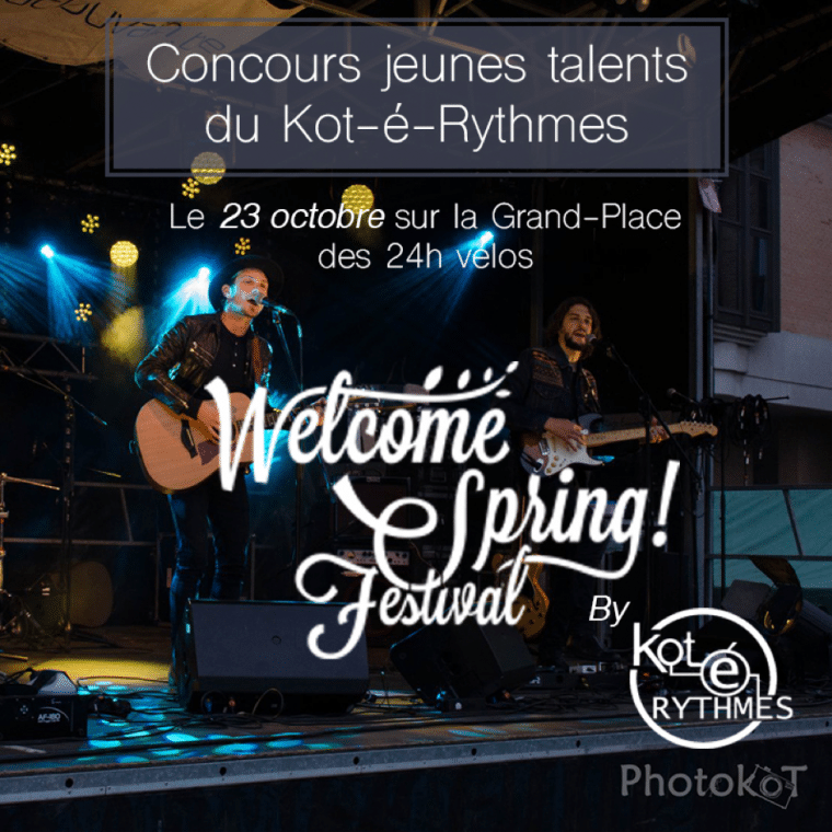 Ce petit concours à l’allure fort professionnelle a pour but de promouvoir nos jeunes talents belges en quête de reconnaissance artistique et musicale. Concrètement, quatre groupes sont sélectionnés et pourront se produire sur la plus grosse scène, celle de la Grand Place, lors des 24h Vélo de Louvain-La-Neuve ! Ils sont ensuite jugés par un jury composé de pointures du monde musical et par un public aux oreilles aiguisées. Les deux meilleurs groupes se produiront en ouverture de scène lors du Welcome Spring! Festival!