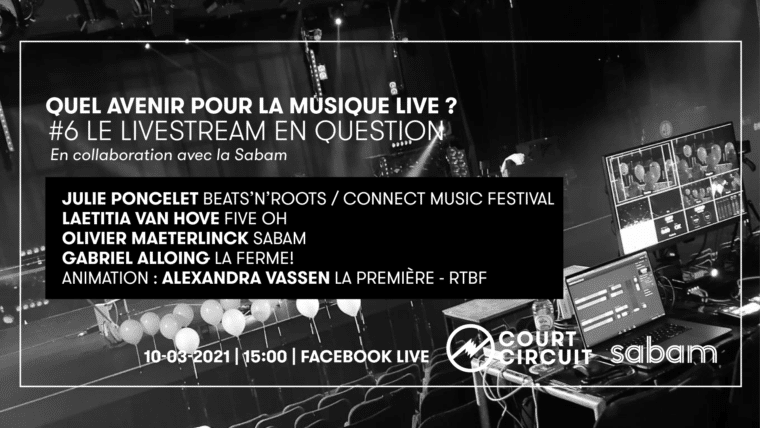 Court-Circuit présente un cycle de rencontres en ligne autour de l’avenir de la musique live, avec des intervenant·e·s actif·ve·s dans le secteur musical. Pour cette nouvelle table ronde, en collaboration avec la Sabam, nous aborderons le cas du livestream sous divers axes.