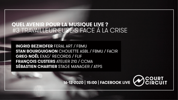 Court-Circuit présente un cycle de rencontres en ligne autour de l’avenir de la musique live, avec des intervenant·e·s actif·ve·s dans le secteur musical. Pour cette troisième table ronde, on donne la parole aux travailleur·euse·s du secteur musical dont les métiers ont été particulièrement impactés par la crise sanitaire.