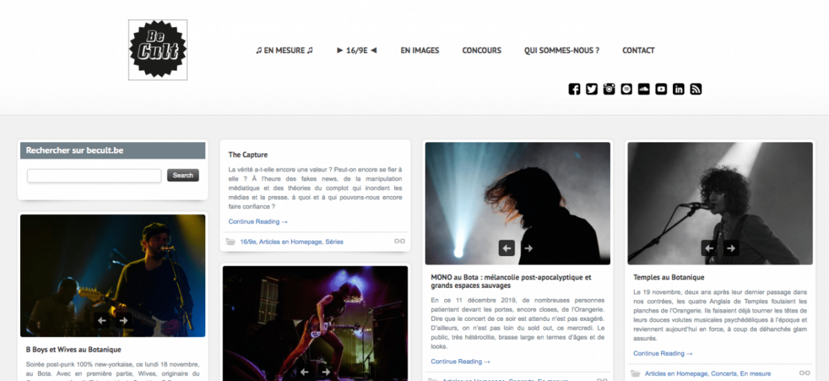 Site d’information culturelle né, en septembre 2012, à l’initiative d’une jeune diplômée en journalisme, BeCult revendique son identité belge tout en s’ouvrant à d’autres horizons musicaux et cinématographiques. Principalement axé sur la découverte d’artistes émergent·e·s, ce webzine prône une vision underground de la culture qui se distingue des celle des médias de masse traditionnels.