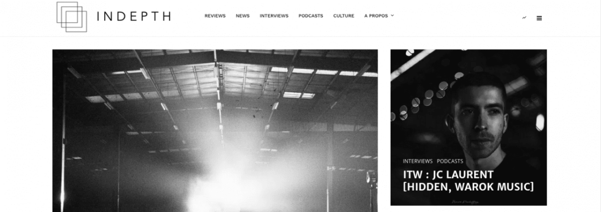InDepth est un média en ligne, basé à Bruxelles, dédié à la scène électronique belge et faisant le focus sur une grande variété de sous-genres musicaux, plus particulièrement liés à la techno.